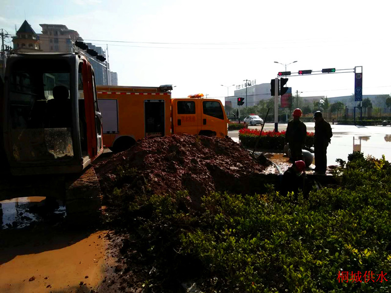 11月2日,安装公司业务室接到报修电话,市经济开发区同祥路博大建工门前水管爆裂,现场有大量自来水涌出。公司立即安排抢修队赶赴现场,迅速关闭两端阀门,最大限度降低水损,降低对周边的影响。