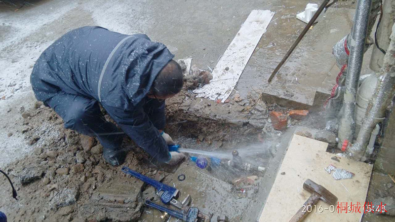 抢修队员赵决龙、赵决贵等人刚维修好阅城国际一户居民家中的水表和闸阀,又马不停蹄地赶赴新的抢修点金地花园小区。该小区7幢5楼一住户家中管道冻裂,整个楼道婉如河流,维修人员关闭管理阀后随即投入紧张的抢修中,凿除管道周边的混凝土,对破裂管道进行焊接处理,安装表箱,仅花了15分钟就有条不紊地完成了所有抢修程序。此时已近傍晚六点,然而他们又要奔赴另一抢修点...直至深夜11点半才结束一天的抢修工作。