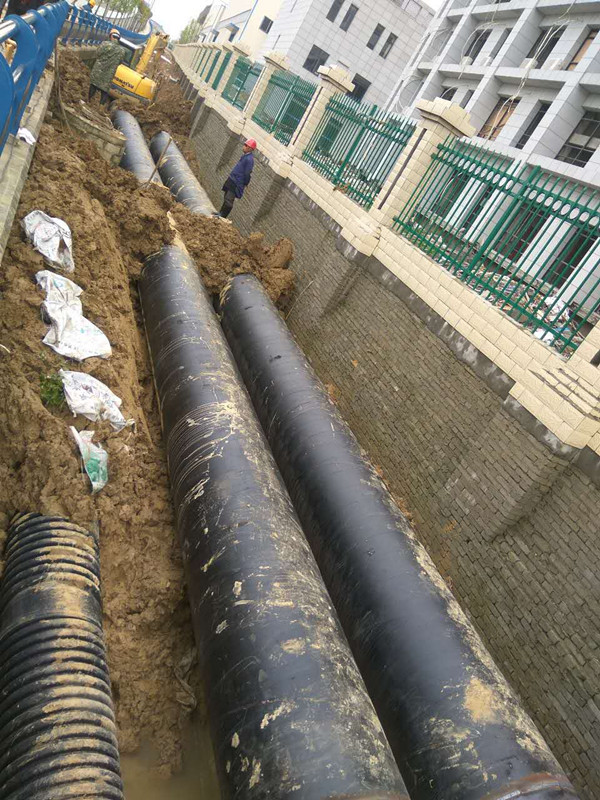 该段工程全长约400米,采用DN900钢管铺设原水管线和出水管线两趟管道,铺设工艺采用“浅挖明铺”的方法,不仅降低了施工难度,而且大大缩减了安装成本。同时,为了保障施工安全和工程顺利,经过多方论证和研究后,制定了切实可行的施工方案和应急预案。