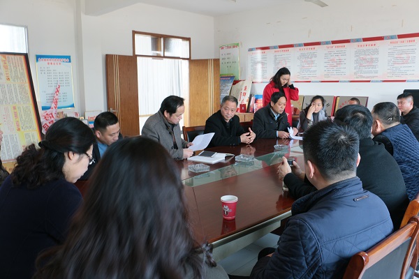 在胡埠村,安书记一行与村两委进行座谈调研。首先,村两委和扶贫工作队总结回顾了去年扶贫工作,介绍了今年扶贫计划。随后,村胡书记带领所有人员学习了《习近平扶贫论述摘编》。最后,结对帮扶党员深入贫困户家中开展走访慰问,了解扶贫对象最新情况。