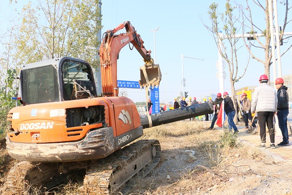 三水厂至孔城水厂供水管网工程是市委、市政府决策部署的一项重要民生工程,该工程从市自来水公司第三水厂向孔城镇输送成品水,根本解决孔城镇水源有限、水质提升问题。它将惠及孔城镇近5万居民,标志着我市在加快推进城乡供水一体化进程中迈出了坚实步伐。