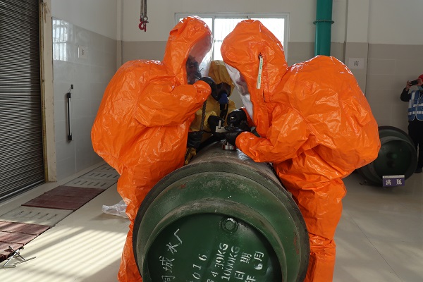 三水厂配合市公安局开展危化物品泄漏警情应急处置演练