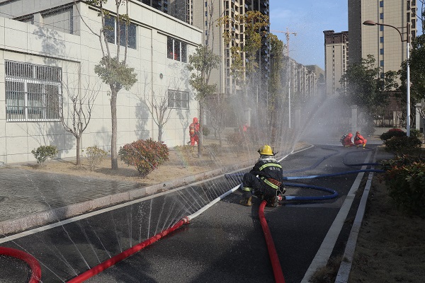 本次演练通过设置水厂氯气库房发生氯气泄露警情,检验各接处警部门在接警、派警、处警及部门联动等各环节的现场处置能力。在情指大队的指挥调度下,各警种部门迅速赶到现场,按照职责分工开展处置工作。交警七中队民警在主要路口实行交通管制,禁止无关车辆、人员进入;信通室民警升起无人机对现场进行全方位立体侦察;特警、派出所民警在厂区外围使用警戒带隔离,设立警戒区域,对周边住户、人员进行疏散,劝离围观群众;消防队员与水厂技术人员对接了解现场情况,迅速在库房内外分别展开紧急堵漏和水幕稀释、喷淋工作。三名特警队员佩戴空气呼吸器进入厂区协助开展救援工作。在市公安局、市住建局、市应急管理局及市供水集团公司等单位的密切协作下,应急演练圆满结束。
