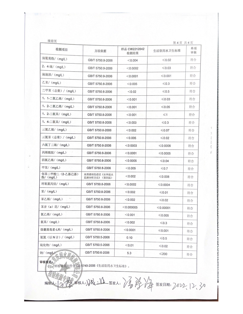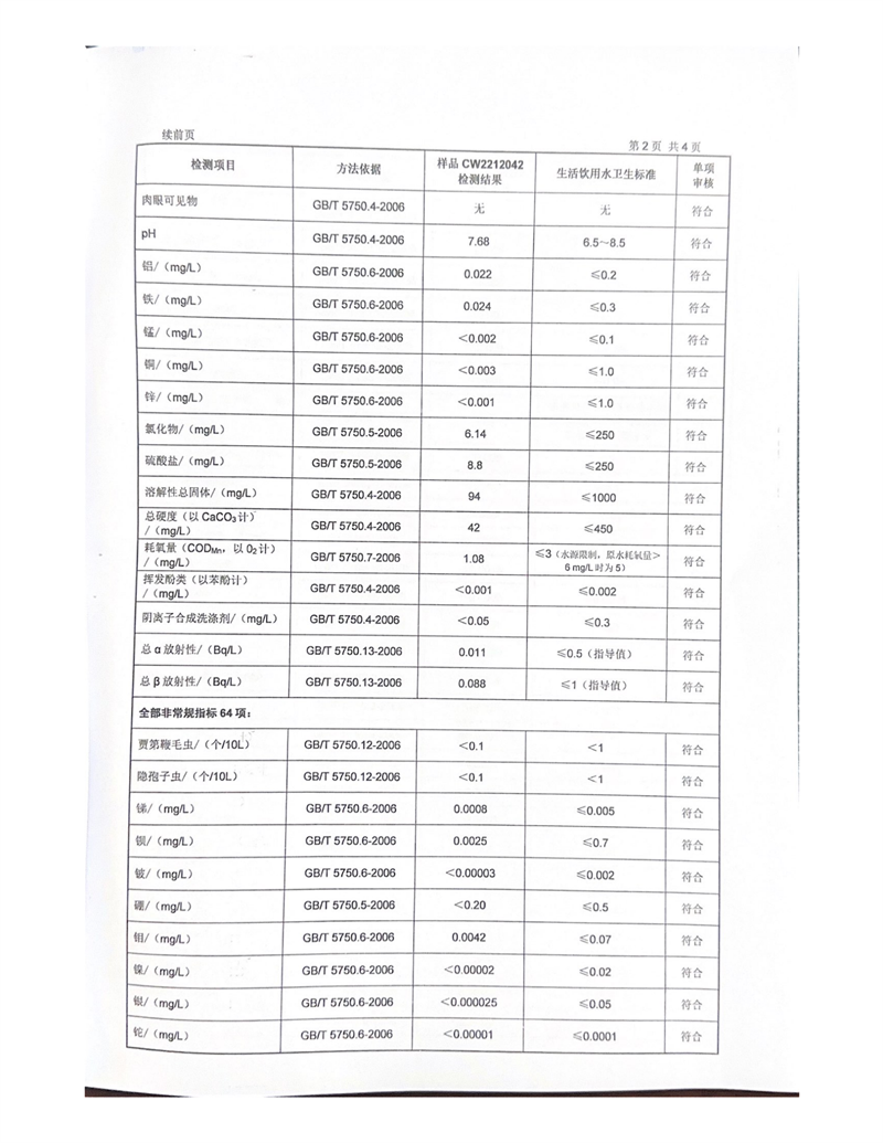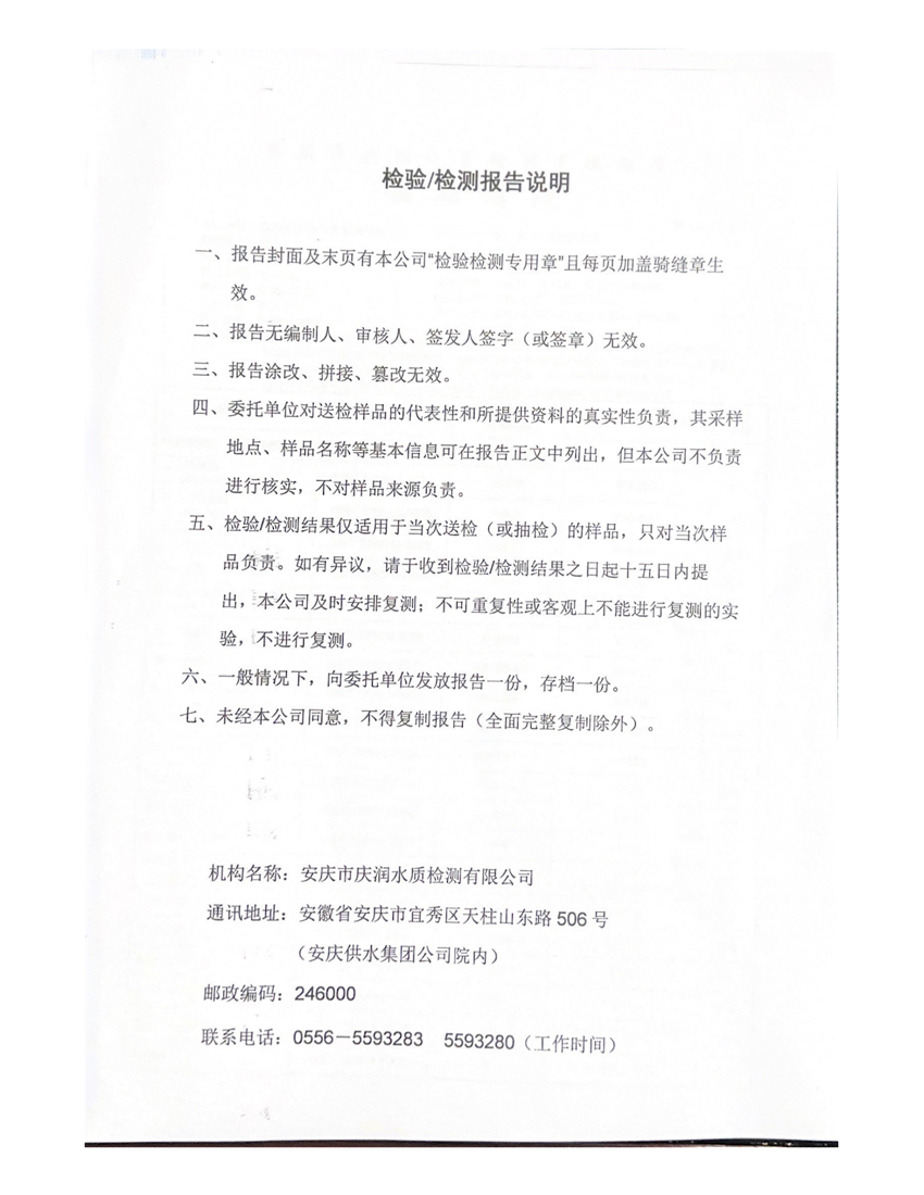桐城市城市公共供水水质信息公告(2022年下半年 106项)