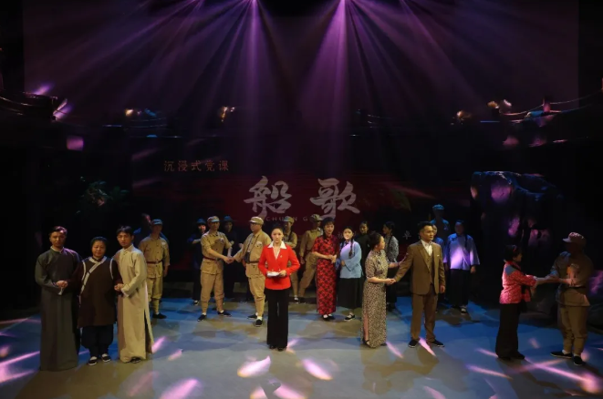 《船歌》是以习近平总书记视察安徽重要讲话精神为引领,以安庆及桐城本地革命斗争历史为蓝本,突破传统党课模式,通过“全域营销+沉浸体验”双轮驱动,为广大党员干部带来的“可听、可看、可参与”的新的红色教育范式。
