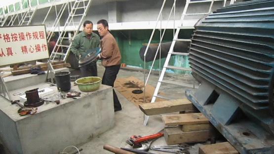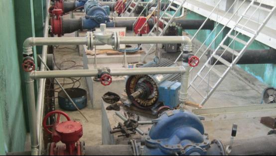 二期工程正在紧张的建设中。今年夏季来临之前,产能不足情况已经突现。就目前4月份生产情况看,用水波峰期甚至要开两台160KW水泵方能保证供水需要,这在往年还是没有出现过的。可见盛夏时节对于二厂供水压力可想而知。水泵高温季节长期高强度工作,维护保养工作显得非常重要,为了保证正常供水,二水厂早早对水泵等供水设备进行全面保养。勤保养成了二厂现阶段必修课。
